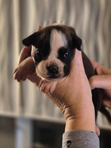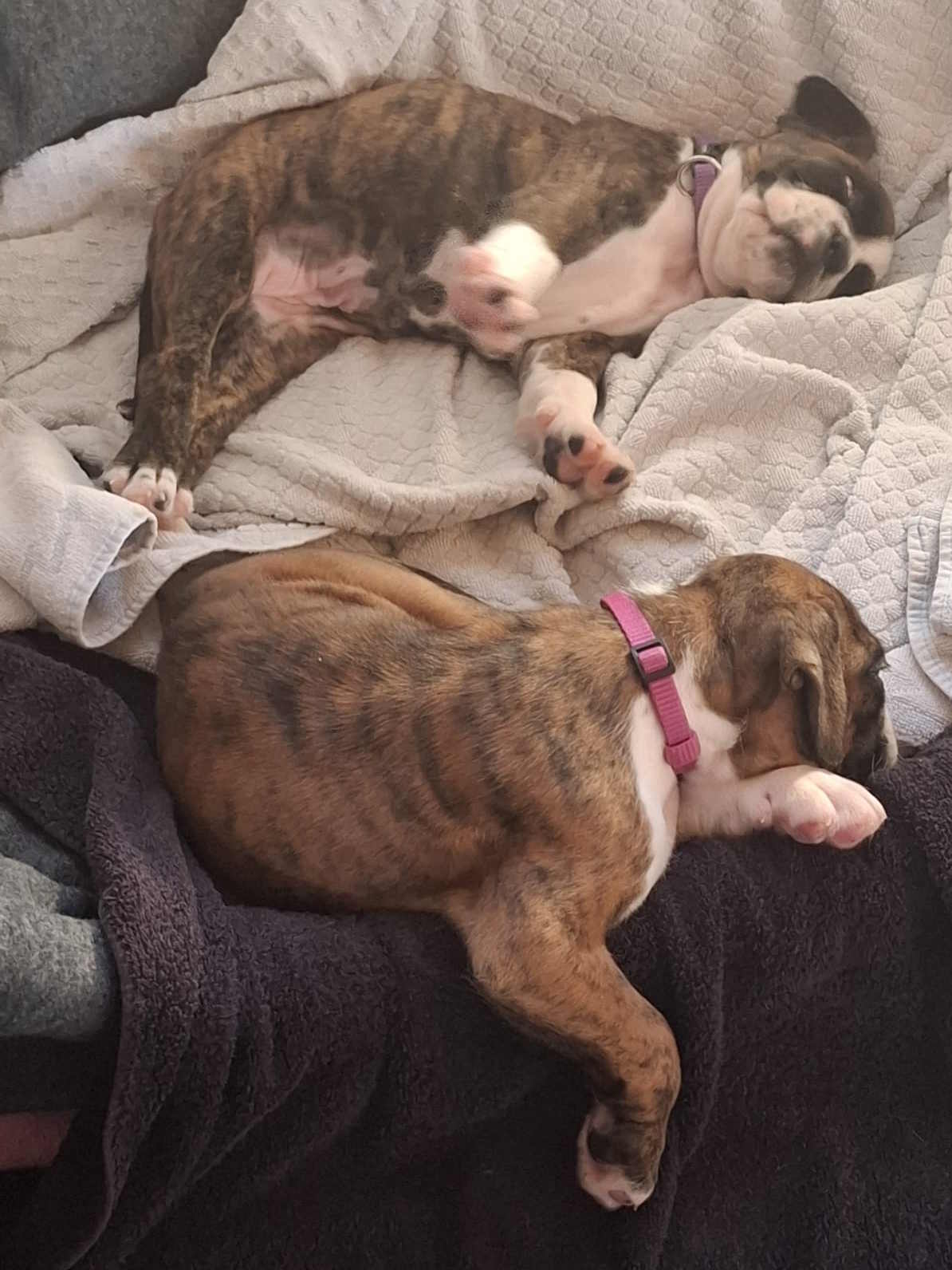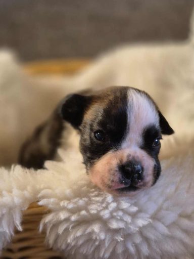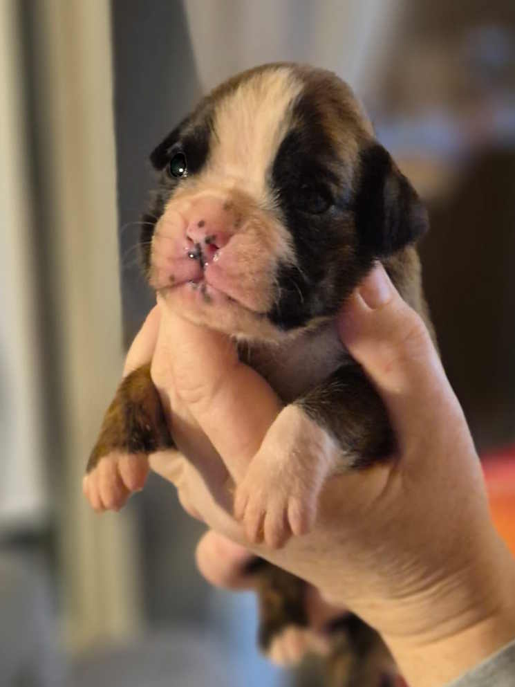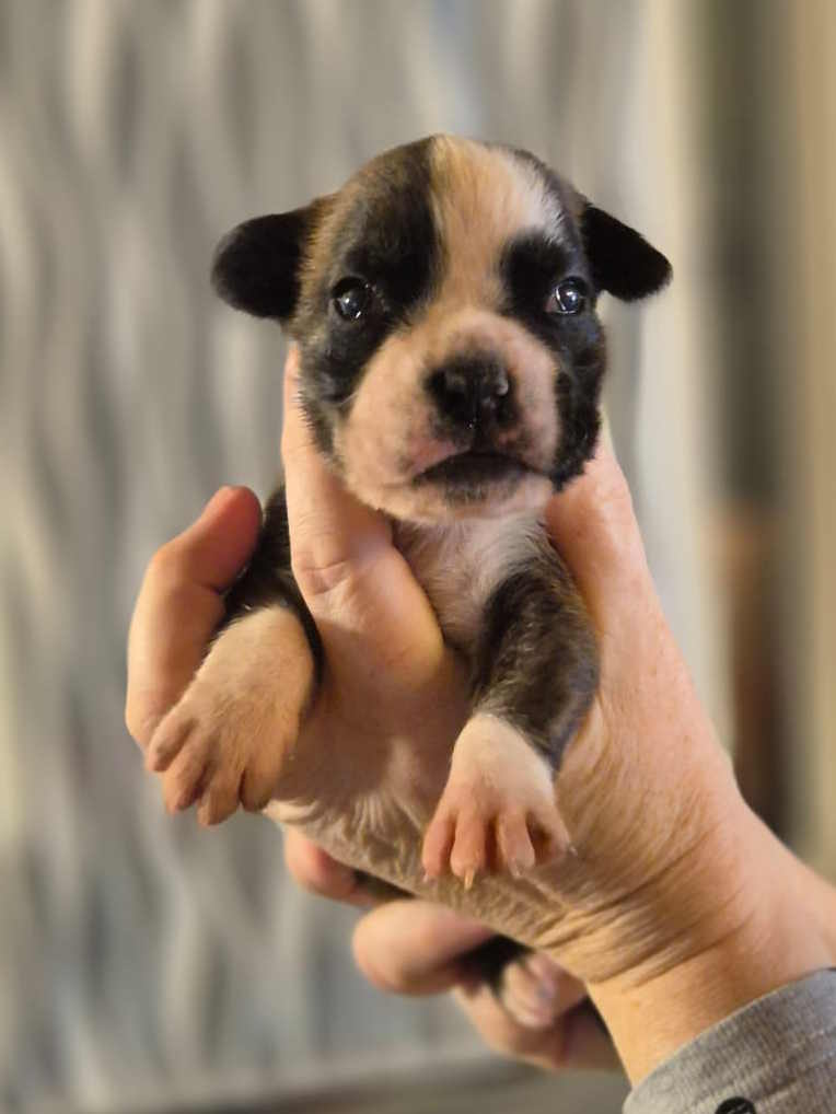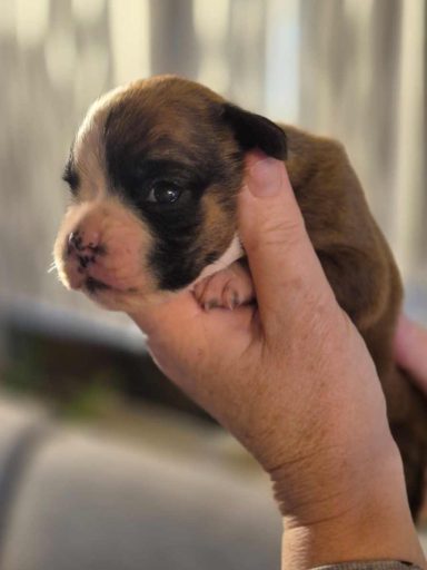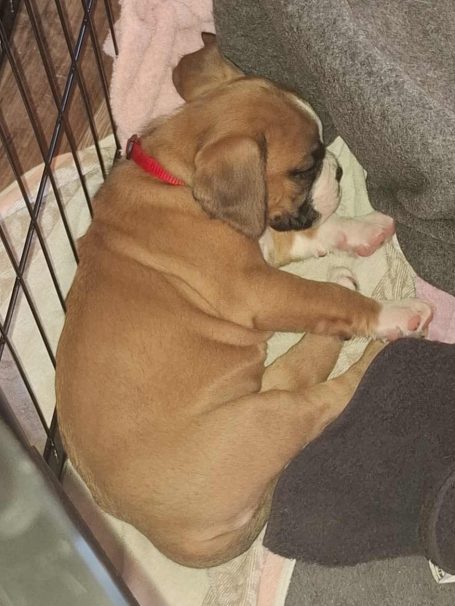 Es wurden drei gesunde Welpen geboren – drei Hündinnen in gelb und gestromt.