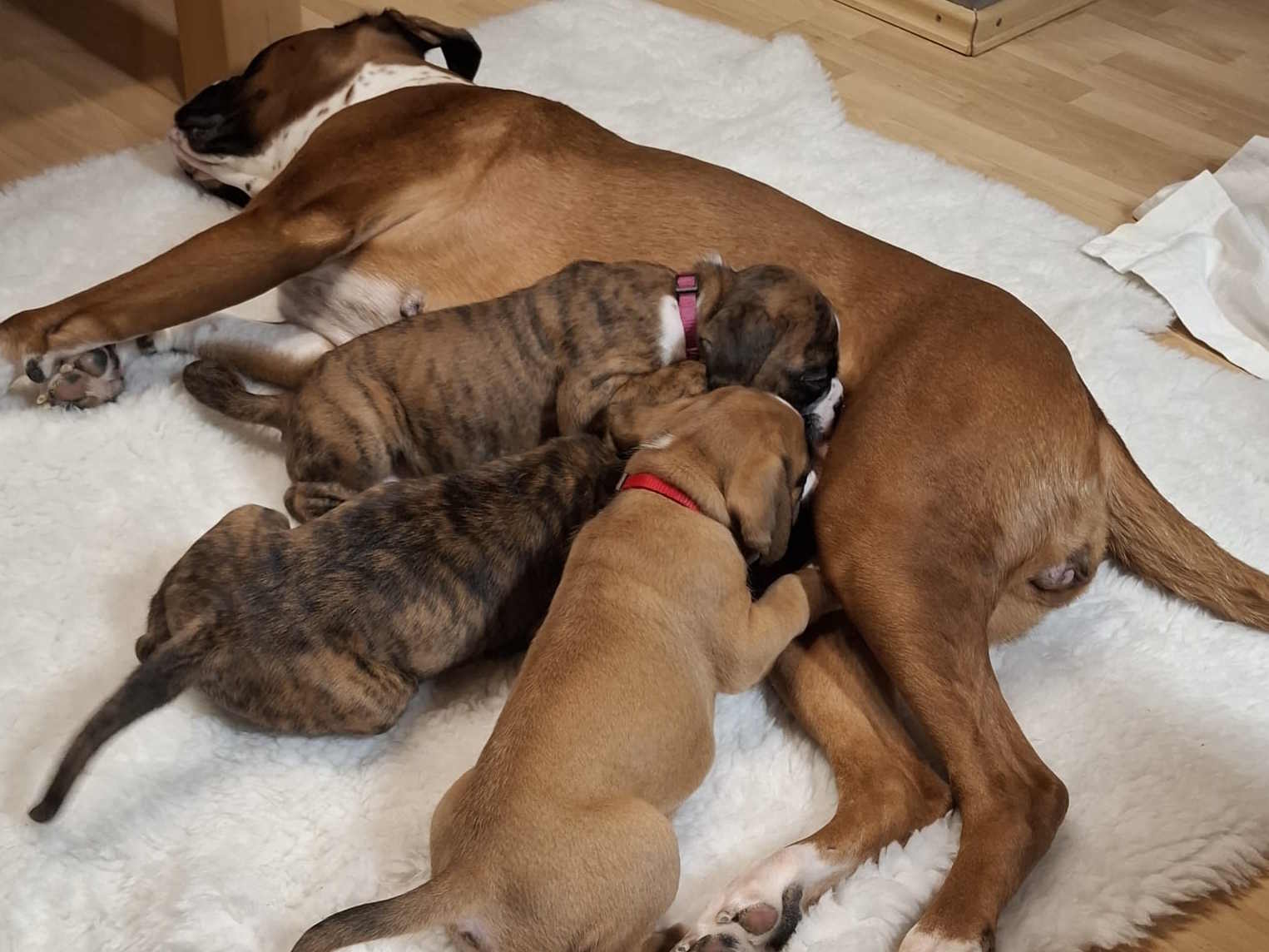 Happy und ihre Welpen sind wohlauf und entwickeln sich prächtig.